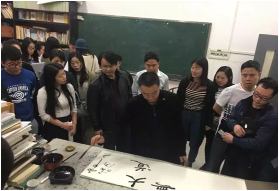 近日,美术与设计公司党总支书记苏美华教授应中南大学建筑与艺术公司书法研究所的邀请,在中南大学作了以《诗化的书法》为主题的讲座。王希俊、罗红胜、向彬等书法学教授也亲临现场。中南大学、湖南师范大学、yl6809永利等高校的书法学研究生、优秀本科生济济一堂。