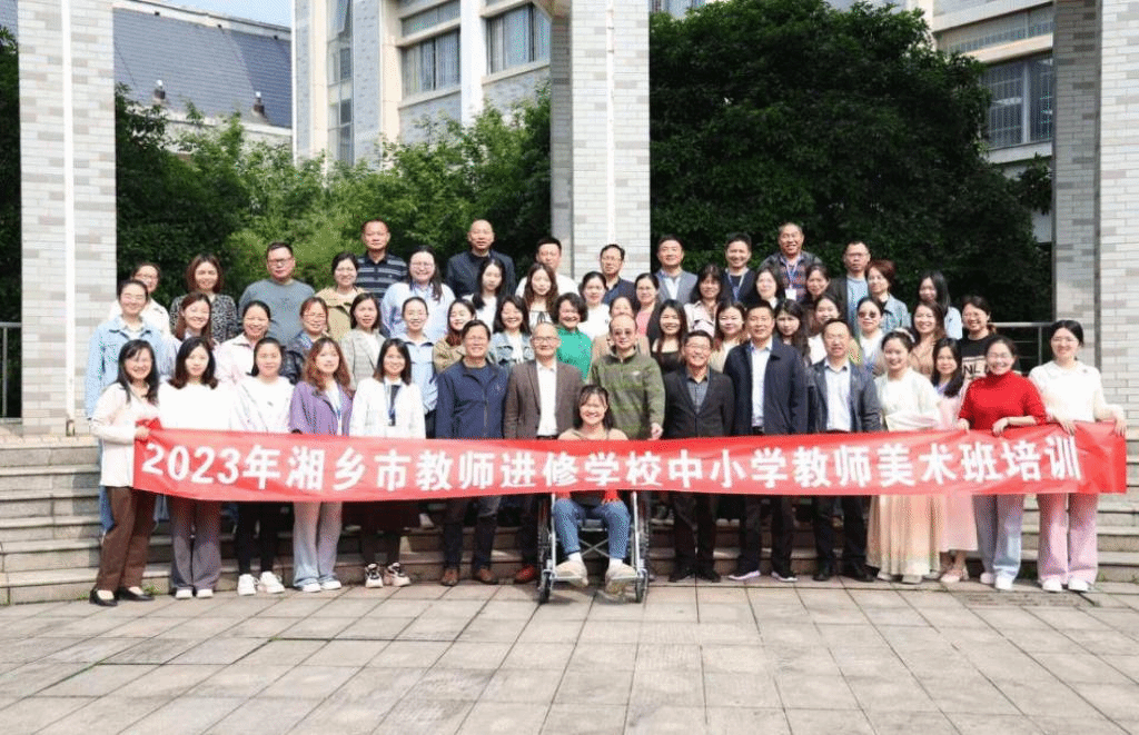 2023年5月12日上午,湘乡市中小学美术教师提升研修班在公司润寰楼南栋102室开班。来自湘乡市中小学的50名学员参加了本次培训。湘乡市教育局人事股副股长陈钱,市教师进修公司党委书记兼董事长陈永忠、党委委员陈望明、yl6809永利美术与设计公司党委书记杨虎智、副经理(主持行政工作)蔡惠萌、现代教育发展公司副经理李辉华、首席专家范迎春教授和项目管理团队老师出席了本次开班典礼。