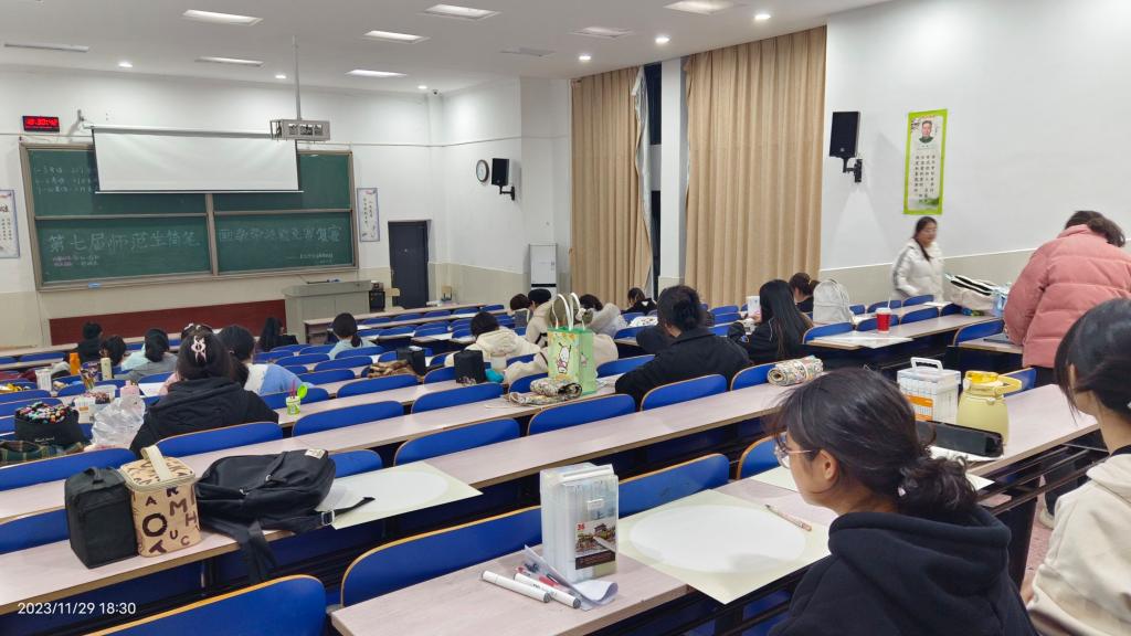 本次竞赛于2023年上学期启动,11月在各公司初赛选拔出复赛选手后,11月29日晚在yl6809永利鹤鸣楼111教室举办了简笔画主题创作现场复赛,来自文学与新闻传播公司、数学与统计公司、教育公司、初等教育公司、外国语公司、物理与化学公司、马克思主义公司、音乐舞蹈公司、yl6809永利的37名复赛选手全身心的投入于创作中。