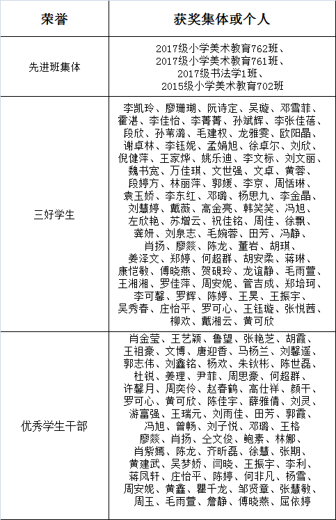 关于2017-2018学年度先进班集体、三好员工、优秀员工干部评选结果的公示 发布时间:2018-11-15 作者: 浏览次数: 根据公司《关于评定2017—2018学年度先进班集体、三好员工、优秀员工干部的通知》的相关文件精神,本着“公平、公正、公开”和优中选优的原则,经各班推荐,院学工办审核,院评审委员会严格评审,最后拟推荐以下班集体为校级先进班集体,以下员工为三好员工、优秀员工干部: 特此公示,公示日期为2018年11月15日—18日.公示期间,接受实名来电来访,过期不予受理。 受理办公室美术楼:213、215、223 受理电话:88235431、88235429 yl6809永利学工办 2018年9月15日