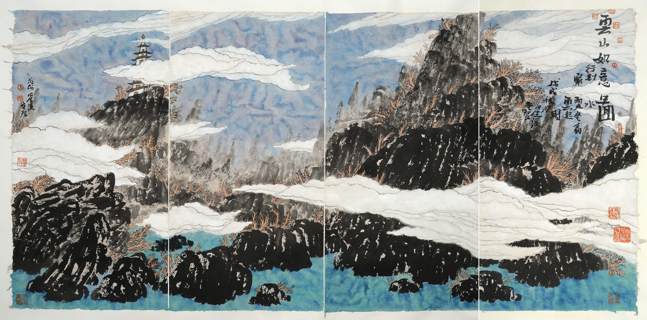 李楚智 中国画 云山如意图 200×100cm 2018