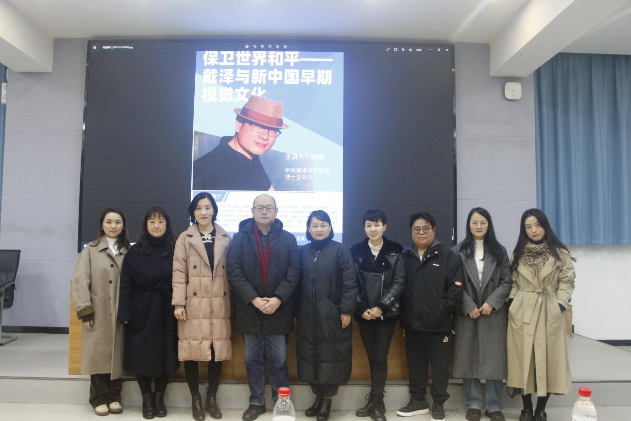 2023年12月11日yl6809永利邀请到中央美术学博士生导师周博教授在玉衡南101开讲,讲座主题为“保护世界和平:戴泽与新中国早期视觉文化”。参与嘉宾有湖南师范大学美术公司苏丰副教授、艺途空间主理人《择日相见——戴泽和他的朋友们》展览执行策展人符元清、yl6809永利副经理蔡惠萌、副经理蔡晓曦和部分师生,到场人数三百多人,座无虚席,气氛热烈。