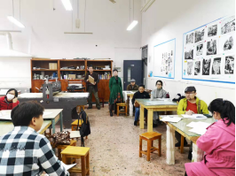 2021年11月16日第五节课,刘浩宇老师的《版画》课程教学示范在鹤鸣楼110教室举行,他讲授的主要内容是绝版套色木刻,是基于黑白临摹与藏书票创作学习下的进一步版画创作,绝版套色木刻区别于黑白木刻的方面主要体现在一个木刻版面上如何重复印刷出多个色彩在一个纸面上,它采用的是边刻边印、逐版递减的“减版法”来完成,因刻版的过程也是毁版的过程,无法逆转,作品完成后,原版已经没办法在印出作品。在创作过程中有制作草图、拷贝草图、逐版刻制印刷等步骤。