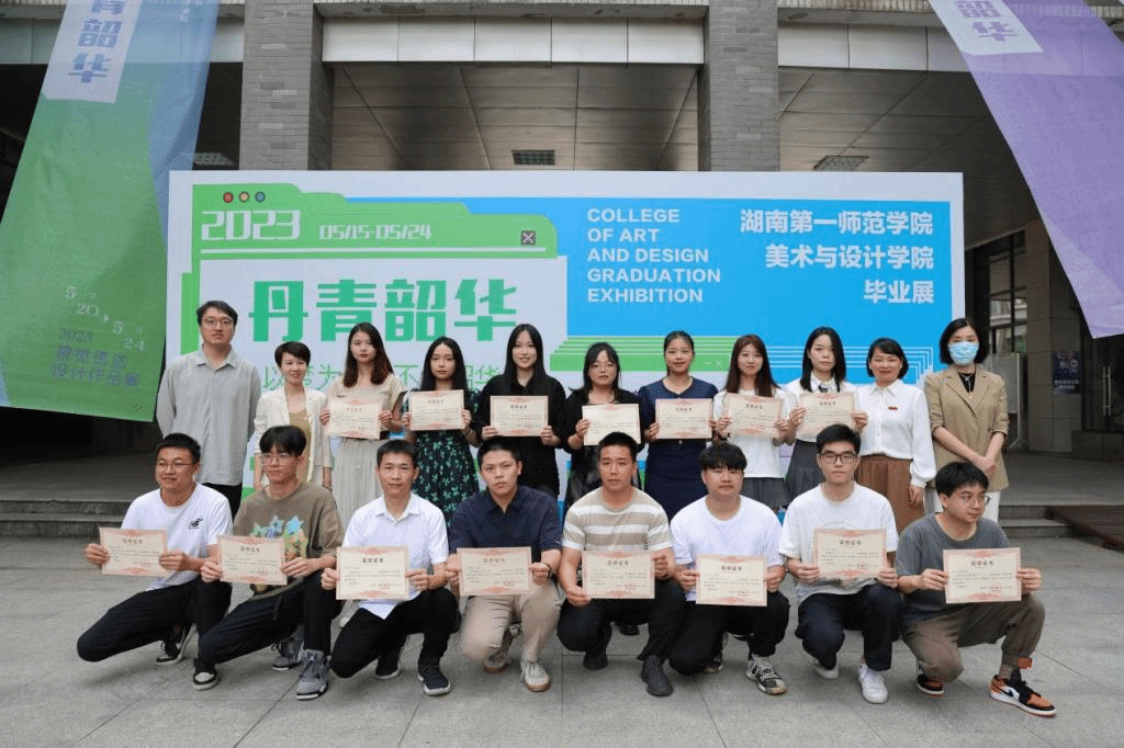 蔡惠萌还代表公司向同学们表示祝贺:在5月13日,由教育厅主办的“第四届湖南高校毕业季美术作品展”在湖南美术馆开幕,专家评审选出18所高校的350幅作品展出,其中公司共计31幅作品入选;最终有50幅作品被评为优秀员工作品,而公司有8幅作品入选优秀员工作品,位列全省高校前列。
